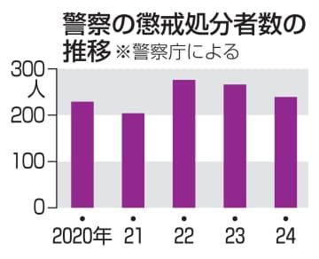 全国の警察官、懲戒処分239人 2年連続の減少、逮捕者は57人 Newsfrom Japan 社会 2025.02.13 10:49 / 2025.02.13 10:57 更新 English 日本語 简体字 繁體字 Français Español العربية Русский 警察の懲戒処分者数の推移2024年に全国で懲戒処分を受けた警察官や警察職員は前年より27人少ない239人だったことが13日、...記事全文を読む(外部サイト画面を表示します) 共同通信ニュース 社会