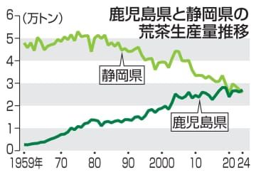 茶の生産量、鹿児島が初首位 農水省発表、静岡は2位転落 Newsfrom Japan 経済・ビジネス 2025.02.18 19:02 English 日本語 简体字 繁體字 Français Español العربية Русский 鹿児島県と静岡県の荒茶生産量推移農林水産省は18日、2024年の荒茶の生産量で、鹿児島県が静岡県を上回り、統計が残る1959年以降で...記事全文を読む(外部サイト画面を表示します) 共同通信ニュース 経済