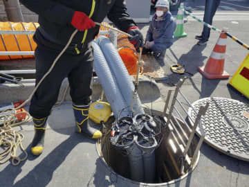 硫化水素検知し何度も中断 埼玉陥没のドローン捜索 Newsfrom Japan 社会 2025.02.26 16:35 / 2025.02.26 18:06 更新 English 日本語 简体字 繁體字 Français Español العربية Русский 捜索に使うドローンをマンホールから下ろす作業員と、外気を送るためのホース=5日、埼玉県八潮市(日本UAS産業振興協議会提供)埼玉県八潮市の県道が陥没しトラックが転落した事故で、ドローンを使って下水道管内を捜索した無人航空機の...記事全文を読む(外部サイト画面を表示します) 共同通信ニュース 社会