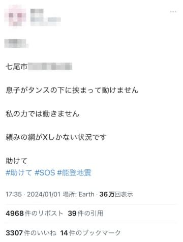 災害時のSNSデマ、懸念9割 28都府県が法規制要望 Newsfrom Japan 社会 2025.03.01 21:11 / 2025.03.01 21:27 更新 English 日本語 简体字 繁體字 Français Español العربية Русский 能登半島地震でX(旧ツイッター)に投稿された虚偽の救助要請(画像の一部を加工しています)災害時にインターネット上の交流サイト(SNS)で拡散するデマ(偽情報)や誤った情報について、全都道府...記事全文を読む(外部サイト画面を表示します) 共同通信ニュース 社会