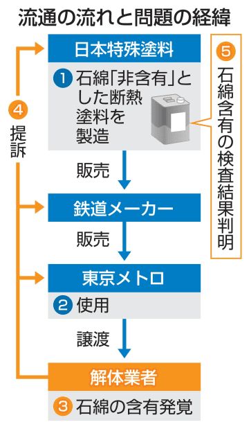 【独自】鉄道塗料から基準値超えの石綿 大手メーカーが「非含有」と販売 Newsfrom Japan 社会 2025.03.02 21:02 / 2025.03.03 09:59 更新 English 日本語 简体字 繁體字 Français Español العربية Русский 流通の流れと問題の経緯塗料メーカー大手「日本特殊塗料」(日特)が石綿(アスベスト)を含まないとして製造・販売し、東京メトロ...記事全文を読む(外部サイト画面を表示します) 共同通信ニュース 社会