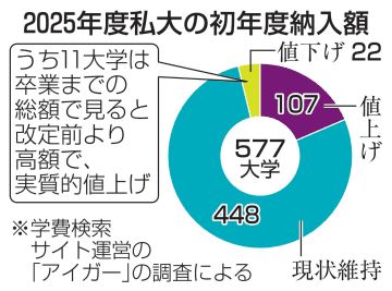 私大の2割、学費値上げ 25年度、家計負担重く Newsfrom Japan 社会 2025.03.04 08:28 English 日本語 简体字 繁體字 Français Español العربية Русский 2025年度私大の初年度納入額全国の私立大577校のうち、入学金や授業料などを合わせた初年度納入額を2025年度に値上げするのは、...記事全文を読む(外部サイト画面を表示します) 共同通信ニュース 社会