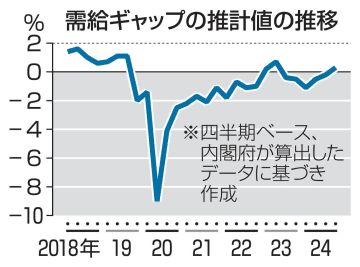 6四半期ぶりに需要超過 経済活発、脱デフレ困難か Newsfrom Japan 経済・ビジネス 2025.03.08 17:08 English 日本語 简体字 繁體字 Français Español العربية Русский 需給ギャップの推計値の推移日本の経済活動が盛んかどうかを示す指標「需給ギャップ」は、2024年10~12月期にプラス0.3%と...記事全文を読む(外部サイト画面を表示します) 共同通信ニュース 経済