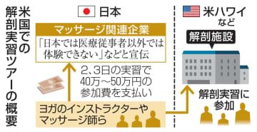 【独自】民間企業が遺体の解剖実習ツアー 米で、スポーツトレーナーら参加 Newsfrom Japan 社会 2025.03.17 10:07 / 2025.03.17 10:17 更新 English 日本語 简体字 繁體字 Français Español العربية Русский 米国での解剖実習ツアーの概要マッサージ関連事業を営む複数の民間企業が米ハワイなどで遺体の解剖実習ツアーを相次いで企画、開催してい...記事全文を読む(外部サイト画面を表示します) 共同通信ニュース 社会