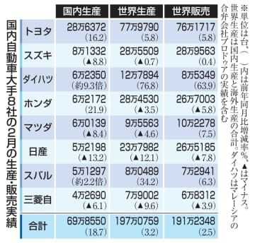 自動車8社、国内生産18%増 2月、認証不正から回復 Newsfrom Japan 経済・ビジネス 2025.03.28 17:57 English 日本語 简体字 繁體字 Français Español العربية Русский 国内自動車大手8社の2月の生産・販売実績自動車大手8社が28日発表した2月の国内生産台数は、前年同月比18.7%増の69万8550台だった。...記事全文を読む(外部サイト画面を表示します) 共同通信ニュース 経済