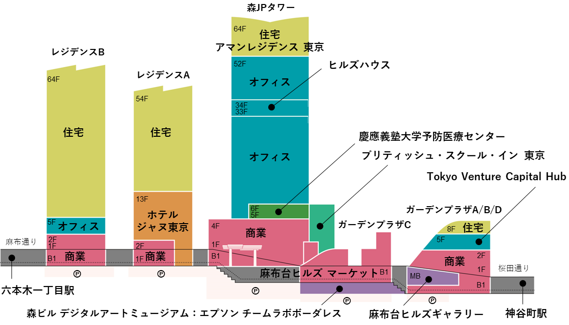 第4弾となる「麻布台ヒルズ」はアークヒルズに隣接し、六本木ヒルズと虎ノ門ヒルズの中間に位置する。文化とビジネスの両方の個性を備えたエリアに立地しており、「これまでのヒルズで培ったすべてを注ぎ込んだ『ヒルズの未来形』」(辻慎吾社長)。開発コンセプトは「Modern Urban Village~緑に包まれ、人と人をつなぐ『広場』のような街~」。