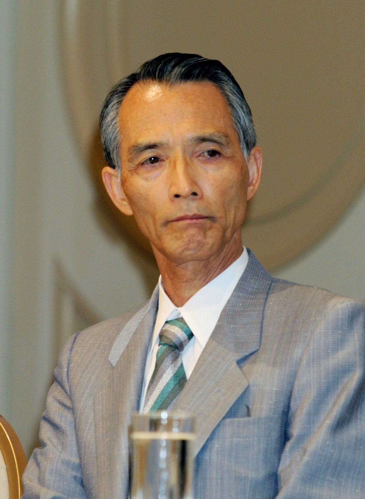 連続ドラマ「人間の証明」の制作発表会見での森村誠一さん=2004年6月15日、東京・台場で(時事)