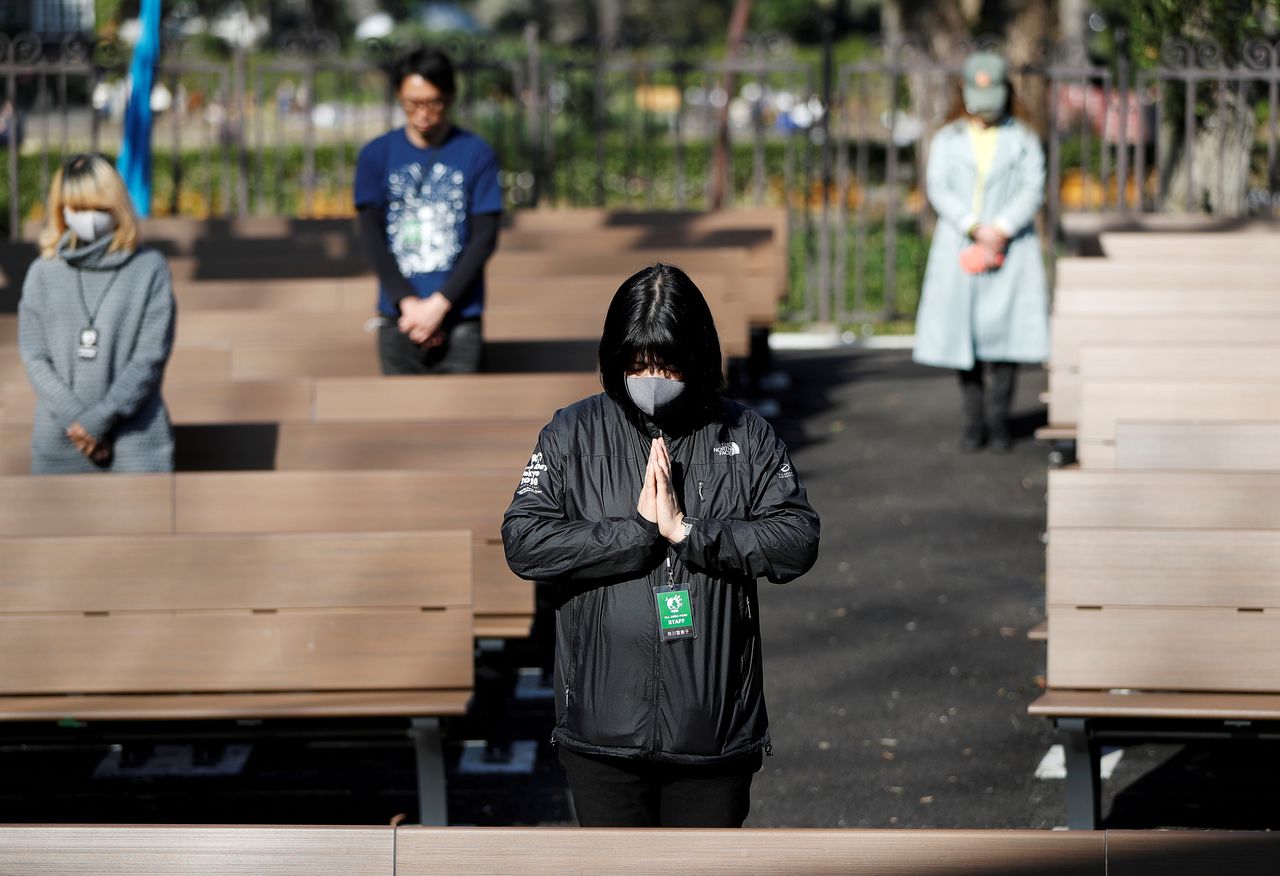 3月11日 東日本大震災から10年目を迎え、日本各地で祈りがささげられた。写真は東京の日比谷公園で撮影(2021年 ロイター/Issei Kato)