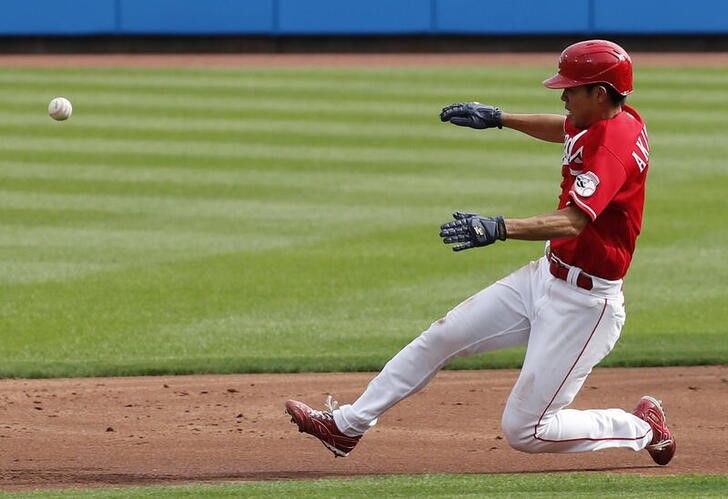 MLBレッズは14日、秋山翔吾外野手が13日のオープン戦で左ハムストリングを負傷したことを発表した。米オハイオ州シンシナティで2020年9月撮影(2021年 ロイター/David Kohl-USA TODAY Sports)
