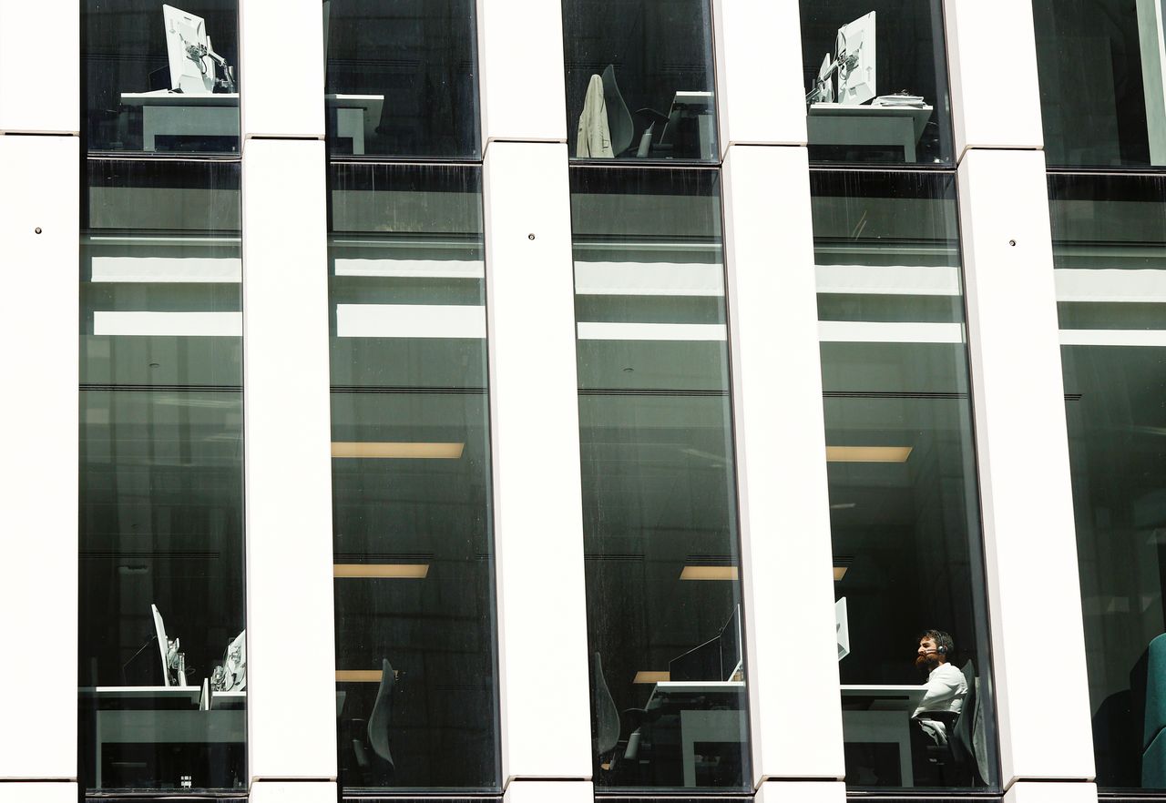 3月23日、KPMGが発表した主要国際企業に対する調査によると、多くは新型コロナウイルスの流行を受けたオフィスの縮小をもはや検討していない。ロンドンのオフィス街で2020年7月撮影(2021年 ロイター/John Sibley)