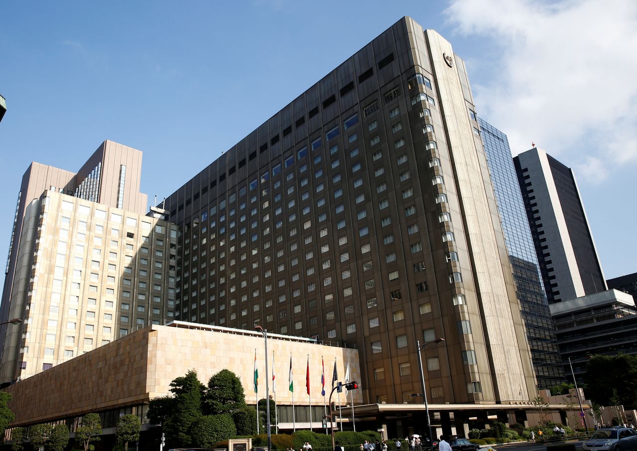 帝国ホテルは25日、帝国ホテル東京(千代田区)の建て替えに関する共同事業について、三井不動産と基本合意したと発表した。総事業費は約2000億─約2500億円を見込んでいる。帝国ホテル東京の前景。2017年7月12日に撮影。(2021年 ロイター/Kim Kyung-Hoon)