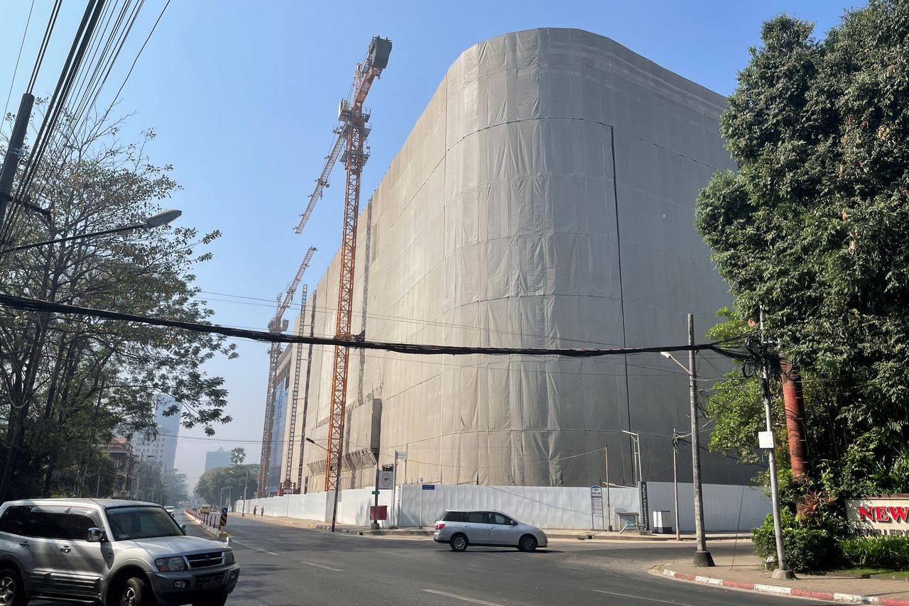 3月25日、ミャンマーで総額300億円以上の不動産開発事業を進める日本の官民連合が、ホテルやオフィスなど複合施設を建設する用地の賃料を支払い、それが最終的にミャンマー国防省に渡っていたことが分かった。写真はヤンゴンのYコンプレックス建設現場で2日撮影(2021年 ロイター)