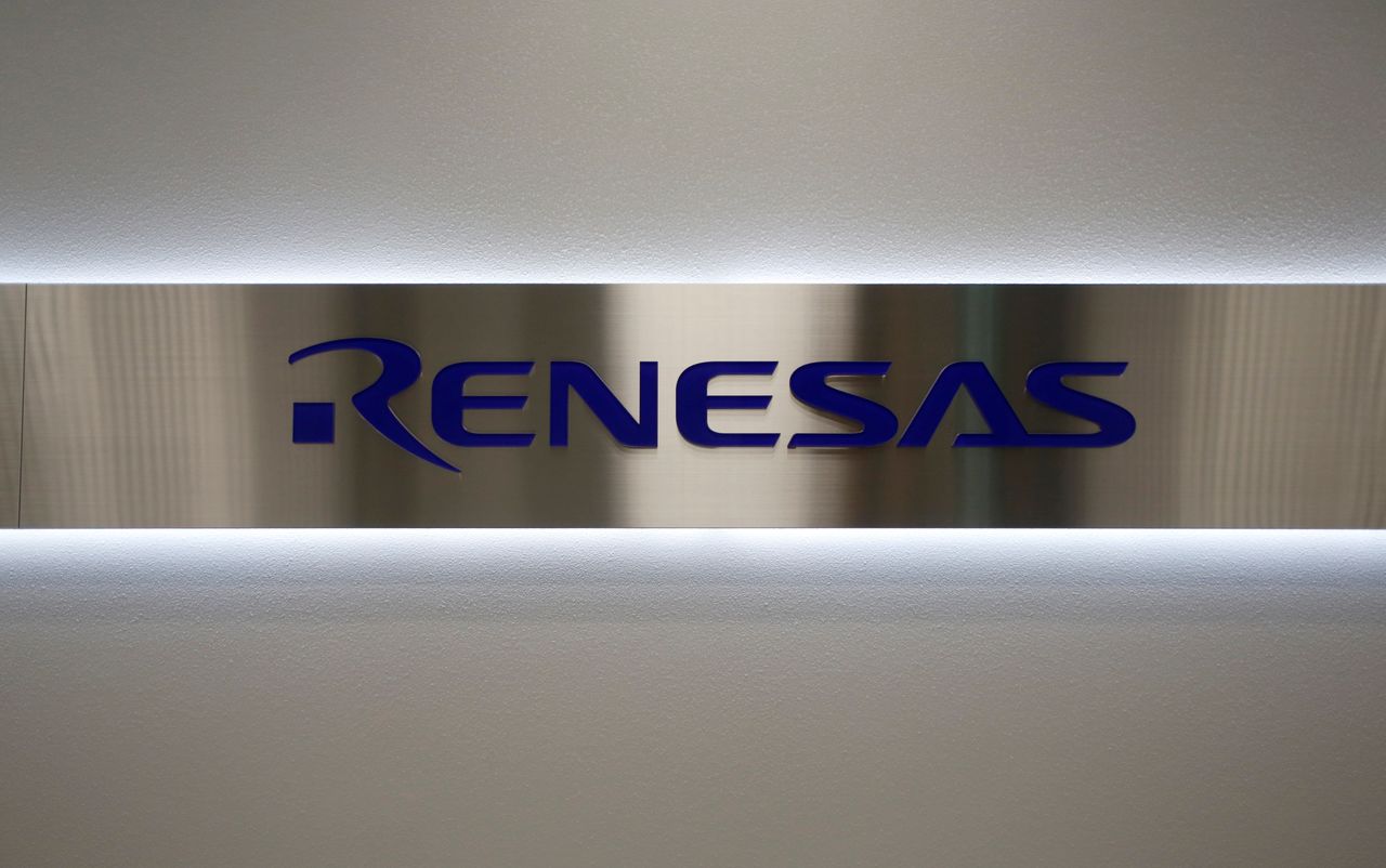 3月31日、半導体大手ルネサスエレクトロニクスの柴田英利社長兼CEOは、火災のあった那珂工場について、2011年に起きた東日本大震災で被災した時よりも「ダメージは甚大」と述べ、「復旧のハードル自体は今回のほうが高いと考えている」と語った。写真はルネサスのロゴ。2017年4月、都内で撮影(2021年 ロイター/Toru Hanai)