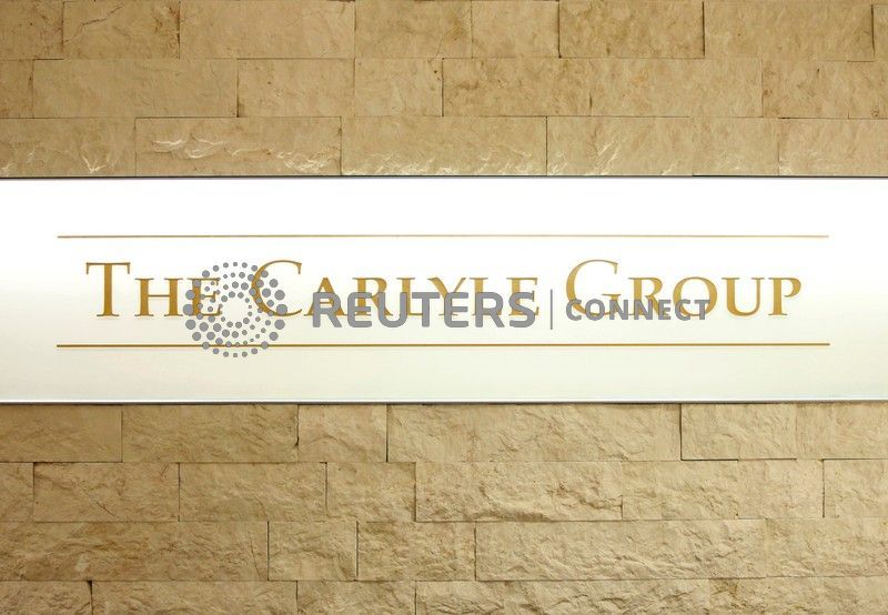米投資ファンドのカーライル・グループは1日、安倍晋三前首相の秘書官や補佐官を務めた元経済産業省の今井尚哉氏が同日付で日本法人のシニア・アドバイザーに就任したと発表した。写真は同グループのネームプレート。2018年10月17日に都内で撮影。(2021年 ロイター/Issei Kato)
