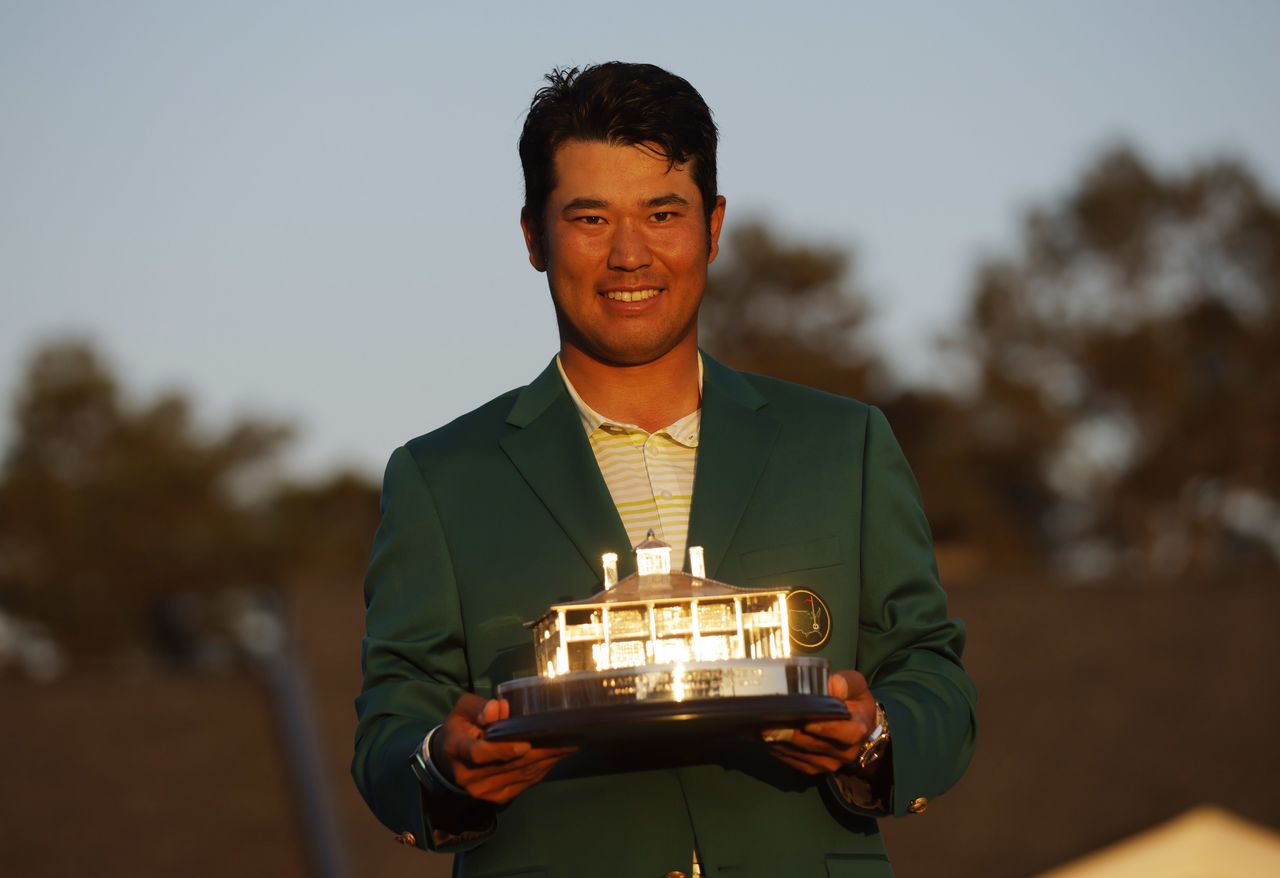 ゴルフのマスターズ・トーナメントで日本男子初のメジャー優勝を果たした松山英樹は、東京五輪に出場した場合、ベストを尽くしたいと述べた。米ジョージア州オーガスタで11日撮影(2021年 ロイター/Brian Snyder)
