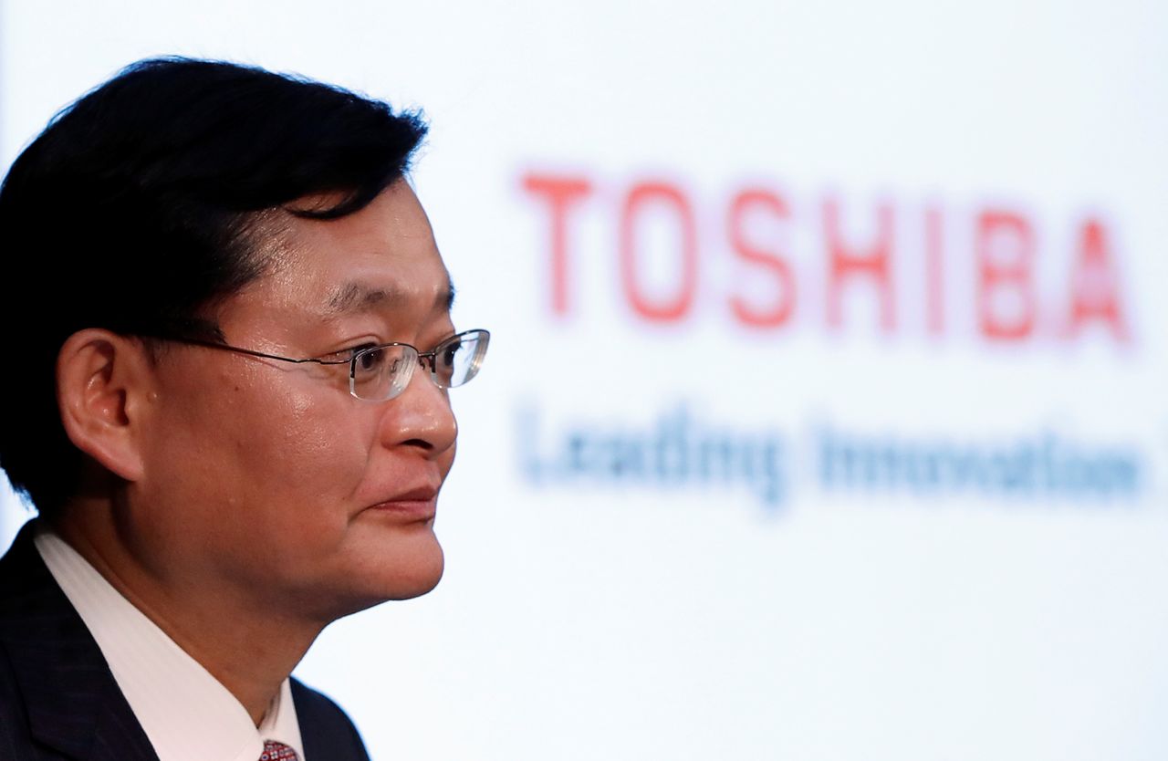 英投資ファンドCVCキャピタル・パートナーズによる買収の動きがある中で、東芝の車谷暢昭社長が辞任した。事情に詳しい複数の関係筋によると、車谷氏への信任が失われてきたことを受け、同氏の進退問題が先に社内で浮上、それに対して車谷氏が「報告」したのがCVCによる買収提案だった。写真は記者会見での車谷氏。2018年撮影。(2021年 ロイター/Issei Kato )