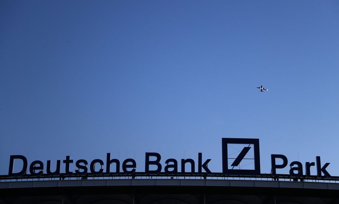 ドイツ銀行が28日発表した第1・四半期決算は純損益が前年同期から黒字に転じ、市場予想を上回った。写真は、同行のロゴ。2020年8月20日にフランクフルトで撮影。(2021年 ロイター/Kai Pfaffenbach)