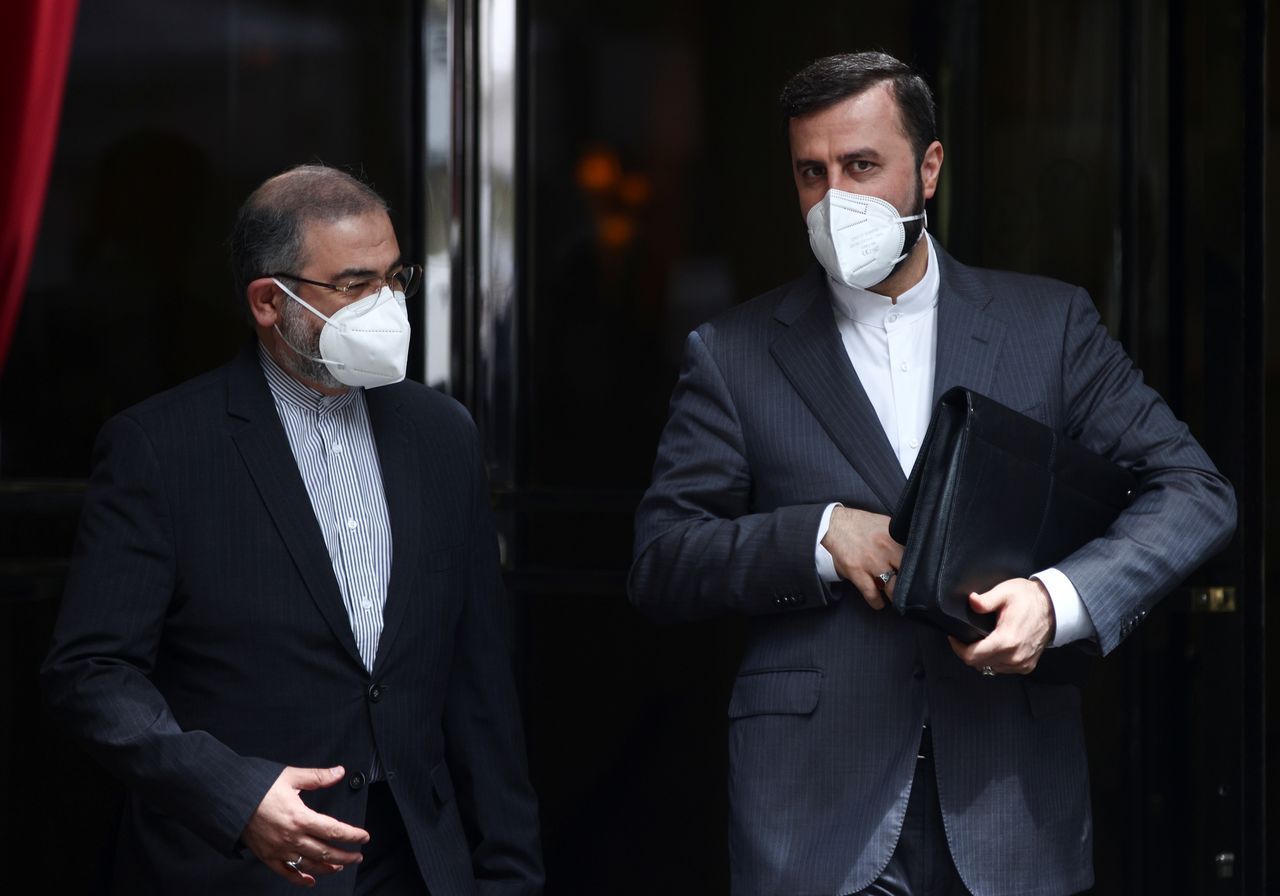 5月24日、国際原子力機関(IAEA)は、イランが核査察受け入れ合意を1カ月延長することを決定し、通知を受けたと明らかにした。イランメディアが伝えた。イラン核合意当事国会合の会場で7日撮影(2021年 ロイター/Lisi Niesner)
