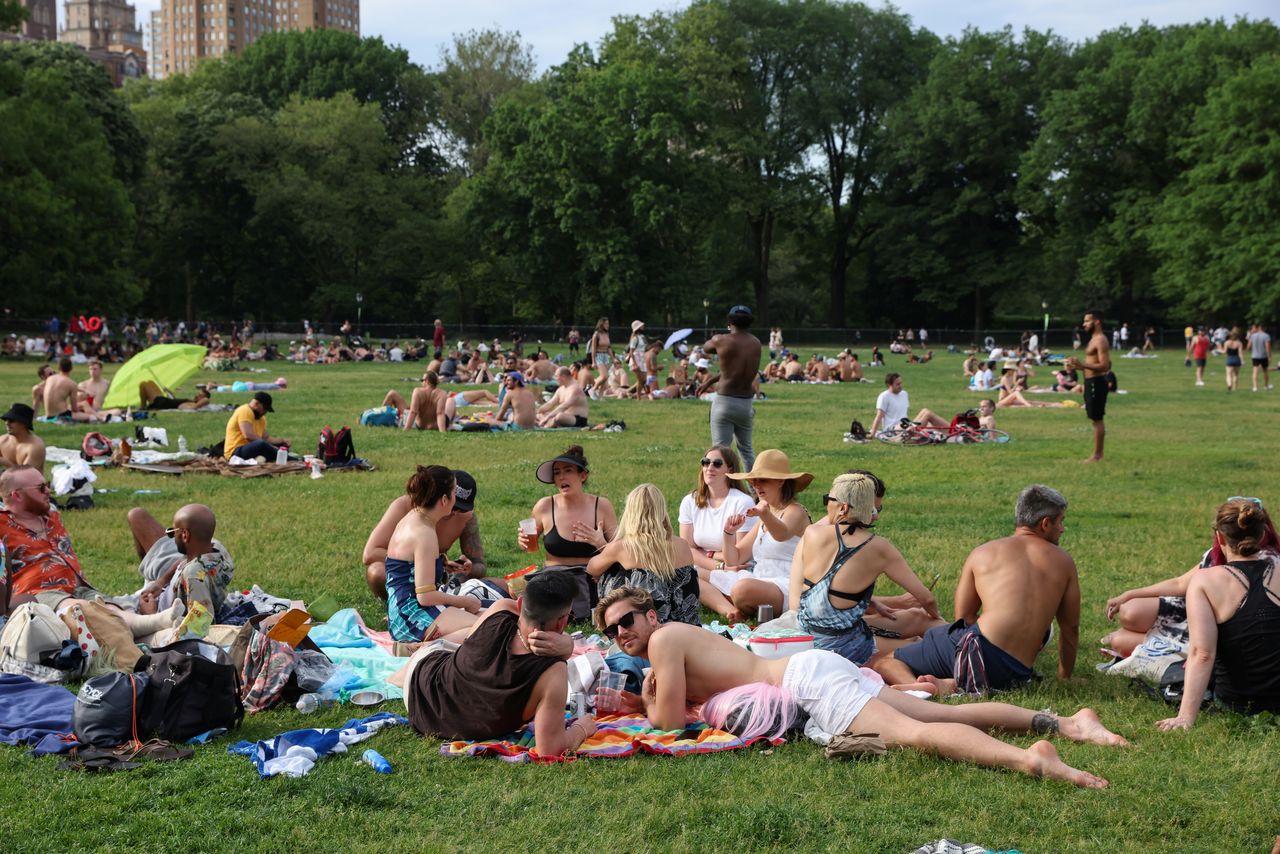 米ホワイトハウスは25日、米国で成人の50%以上が新型コロナウイルスワクチン接種を完全に済ませたと発表した。NY市セントラル・パークのようす。23日撮影(2021年 ロイター/Caitlin Ochs)