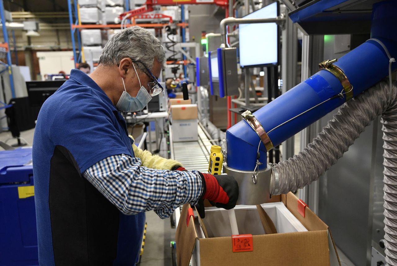 6月1日 欧州連合(EU)の欧州医薬品庁(EMA)は米製薬大手ファイザー製の新型コロナウイルスワクチンについて、ベルギー北部プールスの生産・容器充填(じゅうてん)施設の拡張計画を承認するよう勧告した。写真はベルギーにあるファイザーの工場。4月23日、プールスで撮影(2021年 代表撮影/ロイター)