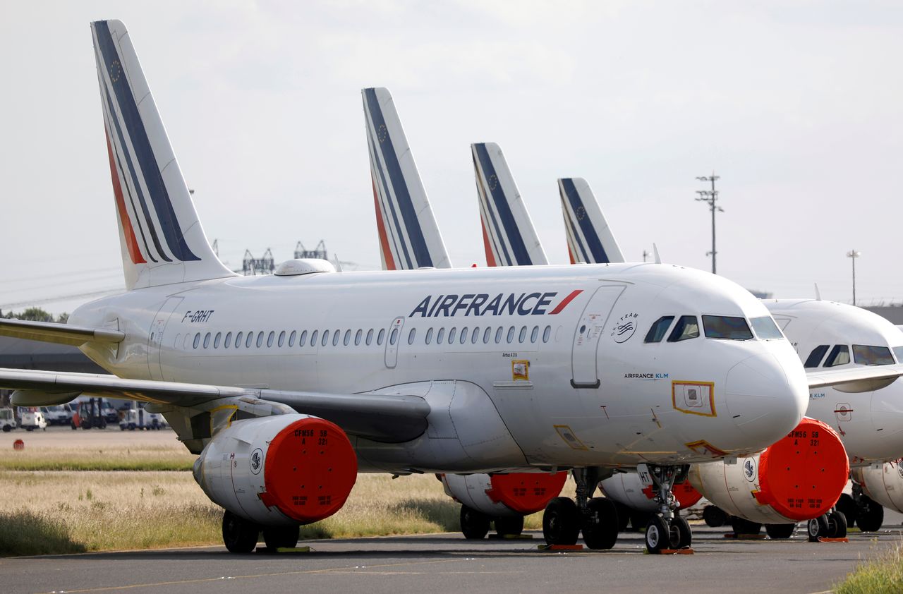 6月4日、中国民用航空局はエールフランス航空のパリ─天津路線について、6月7日から4週間、搭乗率の上限を40%とする方針。写真はエールフランス航空の飛行機。フランスのロアシー=アン=フランスで昨年5月撮影(2021年 ロイター/Charles Platiau)