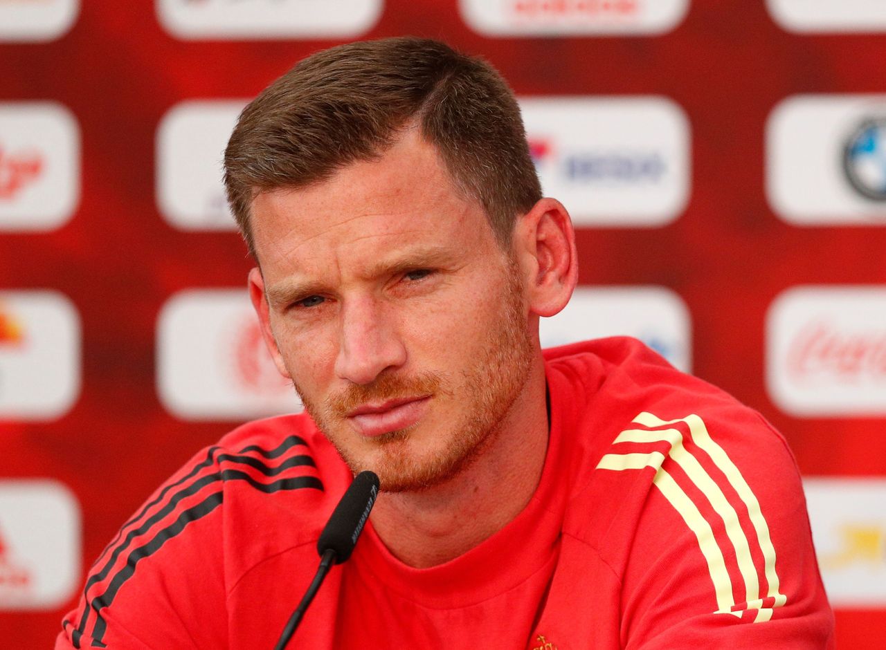 サッカーの世界ランキング1位、ベルギー代表のDFヤン・フェルトンゲンは10日、翌日に開幕する欧州選手権(ユーロ)で母国は優勝候補の最右翼ではないとの見解を示した(2021年 ロイター/Johanna Geron)