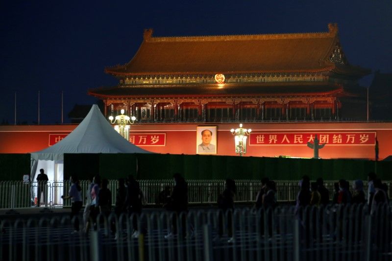 中国の盧沙野・駐仏大使は16日、中国が2020年以降採用している攻撃的で、時として高圧的な外交スタンス「戦狼(せんろう)外交」について、中国を抑え込もうとする欧米諸国の攻撃に対する正当な防衛だと主張した。写真は北京の天安門広場、16日撮影(2021年 ロイター/Tingshu Wang)