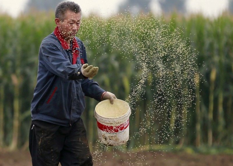 6月18日、中国国務院(内閣に相当)は、肥料とディーゼル燃料の価格急騰を受けて、穀物農家に今年200億元(31億ドル)の補助金を支給すると発表した。一次産品の値上がりに対する最新の対策となる。写真は2015年9月、中国河北省で撮影(2021年 ロイター/Kim Kyung-Hoon)