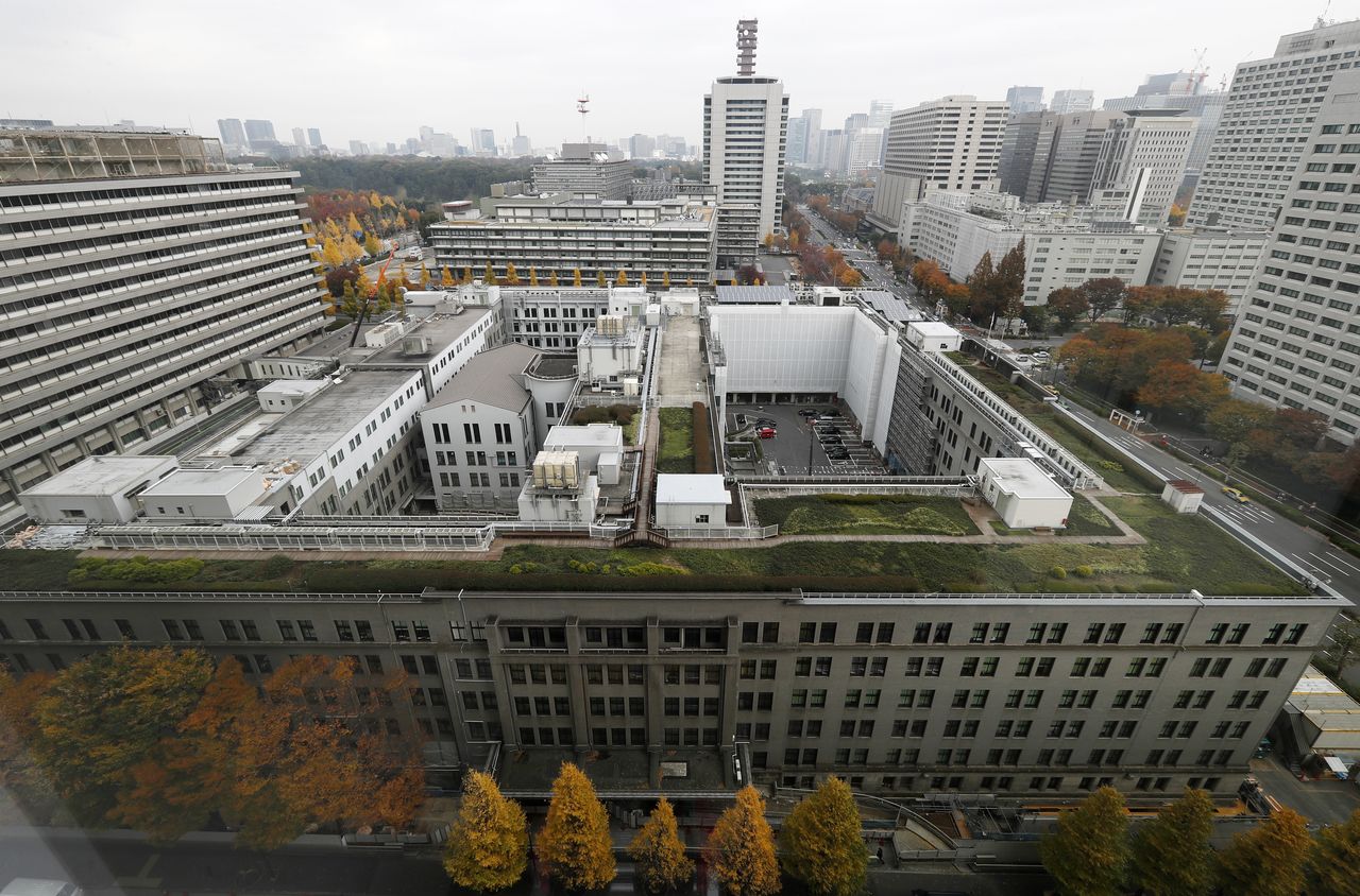 財務省は7日、2022年度の一般会計予算要求総額が111兆6559億円だったと発表した。4年連続で過去最大を更新した。写真は財務省と国税庁の庁舎。2017年11月撮影(2021年 時事通信)