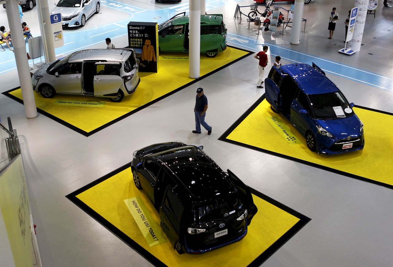 3月1日、自動車販売の業界団体が発表した2月の国内新車販売台数は、前年同月比17.9%減の35万4668台と8カ月連続でマイナスとなった。写真は都内にある自動車会社のショールームで2015年8月撮影(2022年 ロイター/Yuya Shino)