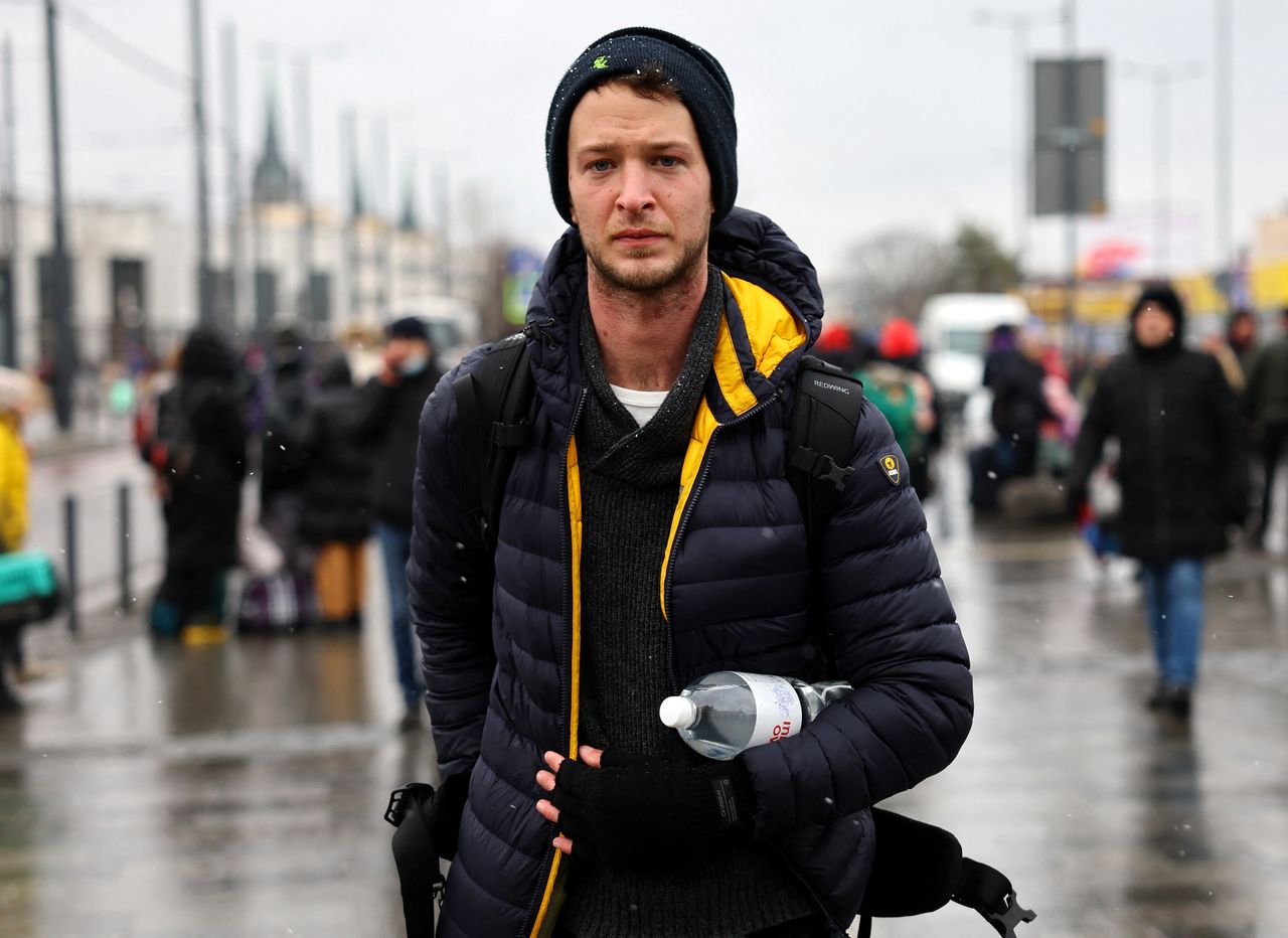 3月7日、ウクライナに到着した外国人志願者の一部は、「大義」に惹かれたと話す。写真は5日、リビウの駅で前線に向かうマイケルと名乗る義勇兵(2022年 ロイター/Kai Pfaffenbach)
