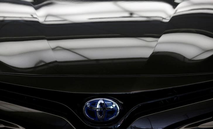 宮城県と福島県で最大震度6強を観測した16日深夜の地震で、ルネサスエレクトロニクスやトヨタ自動車、村田製作所、ソニーグループといった主要メーカーの工場が稼働を停止するなど企業活動に影響が出ている。写真はトヨタのロゴ。都内で2017年8月撮影(2022年 ロイター/Kim Kyung-Hoon)