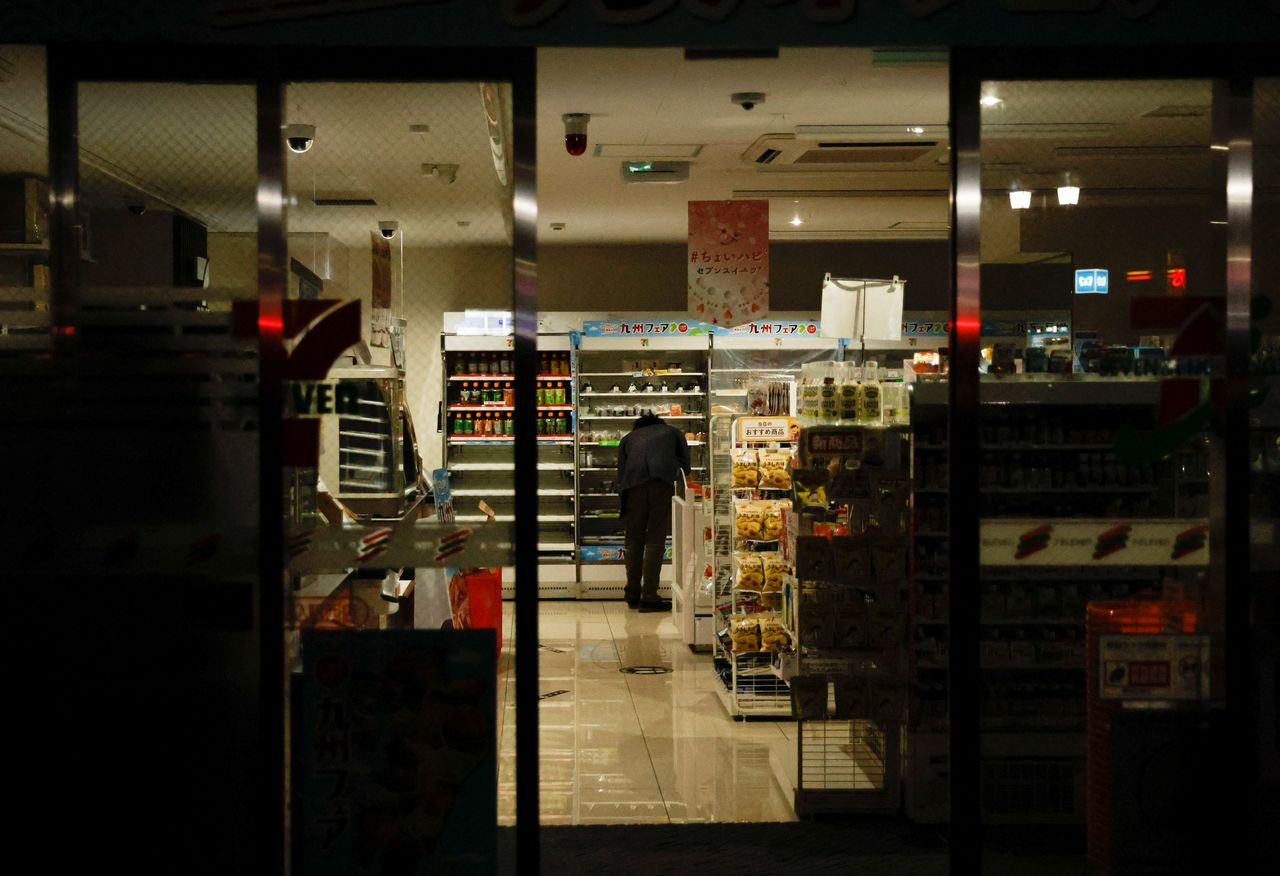 政府は21日、気温低下が予想される東京電力管内で22日の電力需給が厳しくなる見通しにあるとし、初の電力需給ひっ迫警報を発令した。写真は17日、福島県沖の地震の影響で停電となった都内で撮影。(2022年 ロイター/Issei Kato )