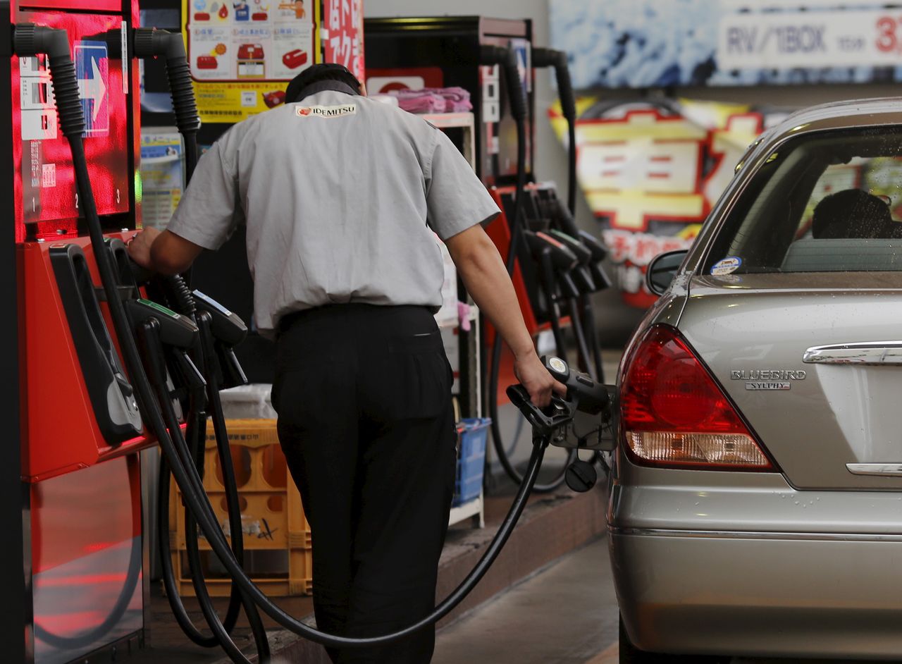 3月30日、経済産業省は、ガソリンなどの価格上昇を抑制するために行っている元売り各社への補助金について、31日から4月6日は1リットル当たり上限の25円を支給すると発表した。写真は都内のガソリンスタンドで2015年8月撮影(2022年 ロイター/Toru Hanai)