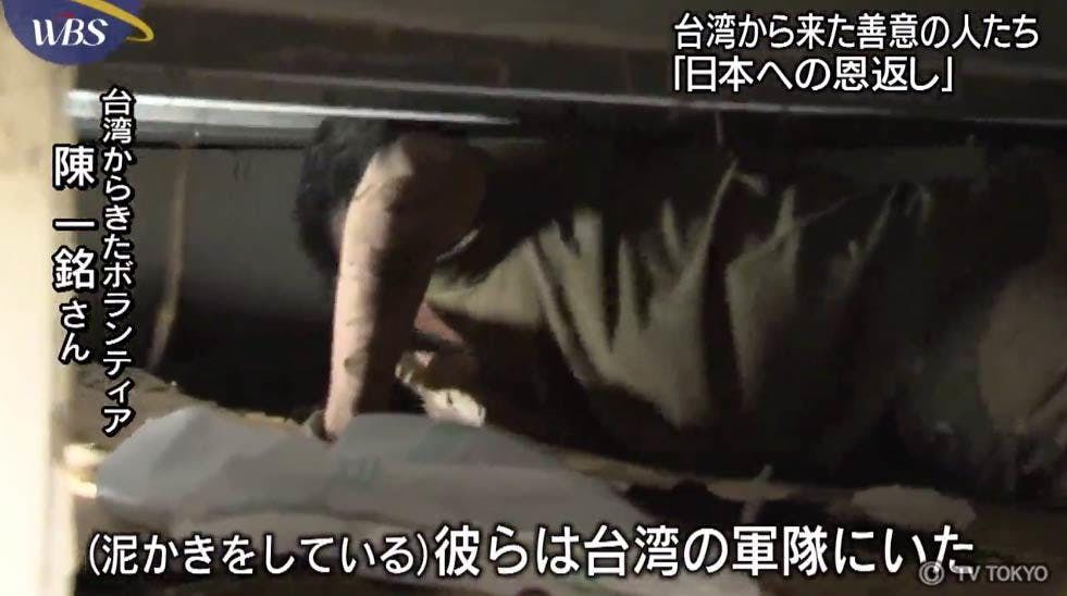 この日のボランティアは、縁の下に泥が入ってしまった家の清掃。狭いスペースで泥をかき出す過酷な作業だが「(泥かきをしている)彼らは台湾の軍隊にいた」といい、こうした匍匐前進は得意という。