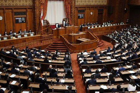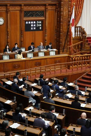 ガソリン税と軽油引取税の暫定税率の廃止法が可決、成立した参院本会議=28日午前、国会内