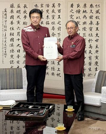 木原氏は辺野古移設について「(在日米軍施設に関する)沖縄統合計画に基づき区画返還を着実に進め、基地負担軽減を実現していく」と強調。玉城氏は沖縄振興への支援などを求める要望書を手渡した。