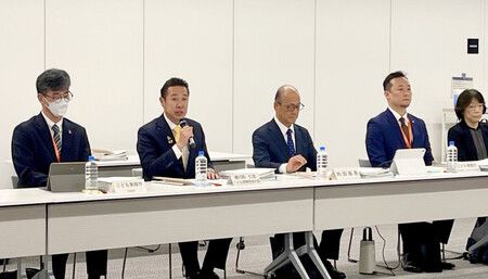 有識者検討会であいさつする黄川田仁志こども政策担当相(左から2人目)=22日午後、こども家庭庁