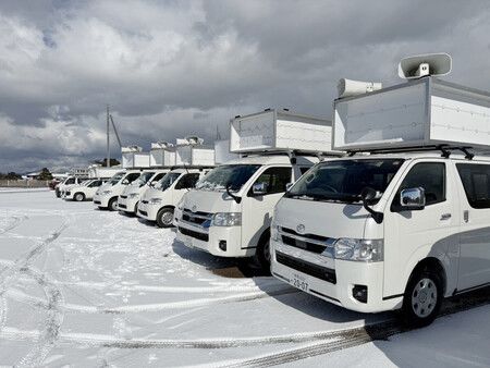 衆院選に向けてレンタルの準備が進む選挙カー=21日、鳥取県米子市(「イシバシホールディングス」提供)