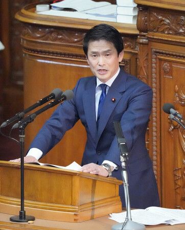 衆院本会議で代表質問する中道改革連合の小川淳也代表=24日午後、国会内
