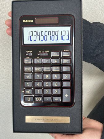 カシオ計算機の漆塗り電卓「S100X―JC1―U」=3月、東京都渋谷区