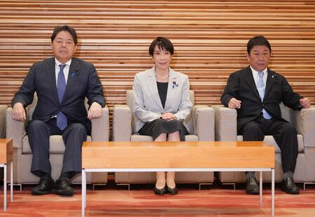 閣議に臨む高市早苗首相(中央)=7日午前、首相官邸閣議に臨む高市早苗首相(中央)=7日午前、首相官邸