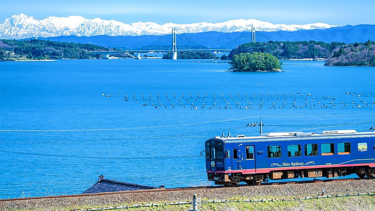 日本国内では年間100を超える観光列車が走っている。車内で豪華な食事やご当地グルメが味わえるレストラン列車、人気デザイナーが手掛けた内外装が美しい列車、車窓から沿線の景色が楽しめる絶景列車、さらにはSL列車、トロッコ列車…etc。さあ、そんな観光列車に乗って日本各地をのんびり旅してみよう。能登半島の七尾湾に沿って走る「のと里山里海号」 画像提供:のと鉄道