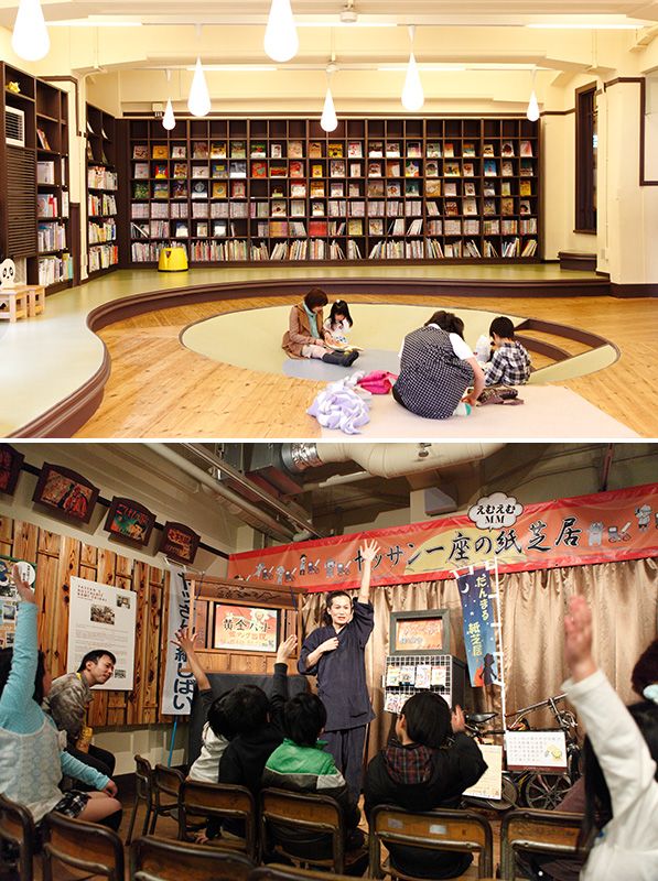 「紙芝居がはじまるよー」。拍子木をたたきながらの呼び声に、館内の子供たちが紙芝居ルームへ駆けつける。昭和30年代以降テレビの台頭によって衰退した街頭紙芝居を毎日上演しているのは、全国でもここだけだ。「水木しげるもマンガを描く前は、紙芝居の作家だったんだよ」。小学生の息子にしたり顔で説明していたお父さんだが、「実は本格的なプロの紙芝居を見るのは自分も初めて」と頭をかく。