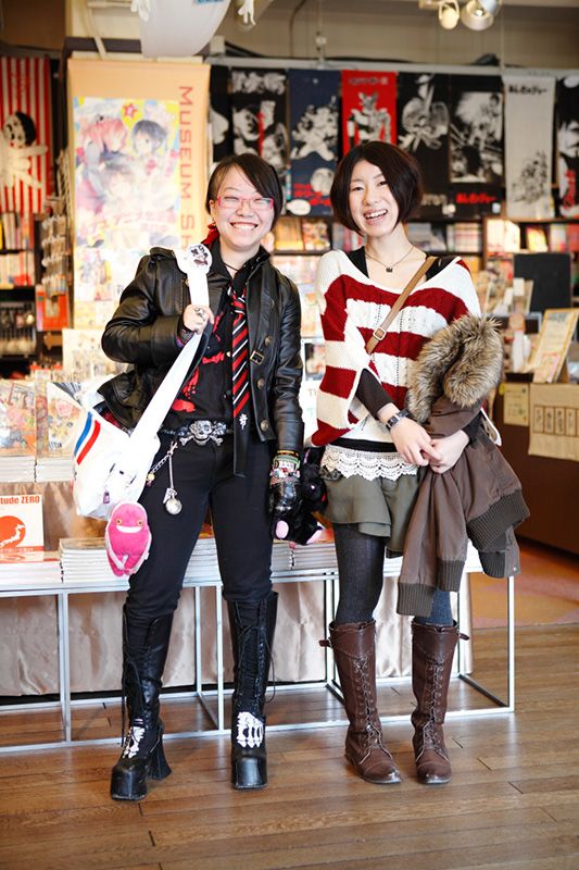 ミュージアムショップはマンガグッズが充実。マンガおたくを自称する横田紗希さん(写真左)は、グッズ購入が目的で大阪から何度もここを訪れている。彼女の服装もどこかコスプレ的だが、ミュージアムでは定期的にコスプレイベントも開催。