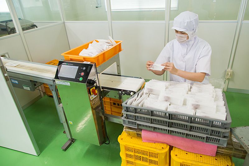 袋詰め作業も人の手で慎重に行われ、さらに金属検査機で異物混入がないかを最終確認する。勝僖梅では、梅の品質に影響を与えないよう保存料を使わず、窒素ガスを充填(じゅうてん)している。そうすることで、減塩した調味梅干しでも、2年間の長期保存が可能になるという。