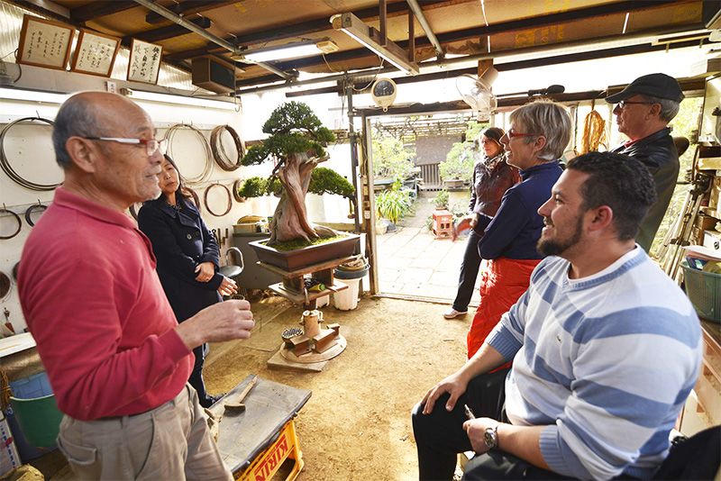 12年、日本政府観光局が海外向けに、日本全国の盆栽園を紹介するパンフレットを作った時のこと。その際に行った欧米でのアンケート調査で、川辺の知名度と人気は抜きんでており、彼が巻頭ページを飾ることになった。