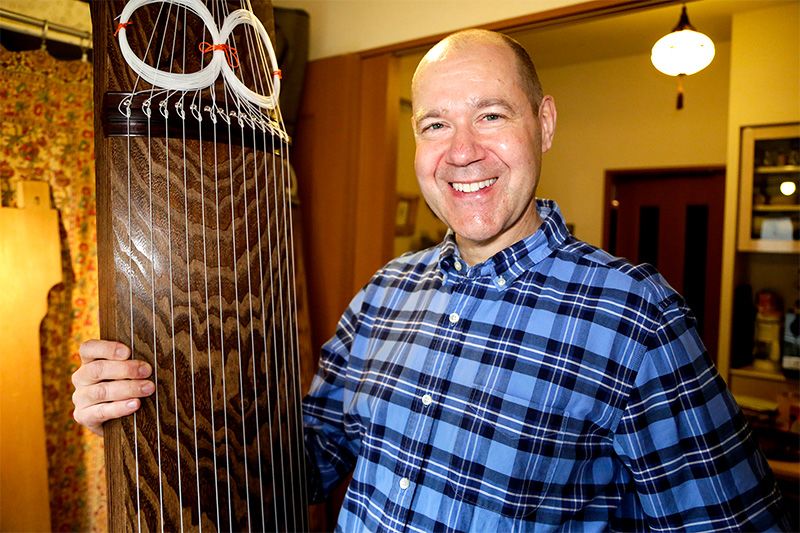 カーティス・パターソンさんは、生まれ故郷のシカゴから30年前に来日。プロの箏奏者兼教師として、次世代に箏の魅力を伝えるべく活動している。