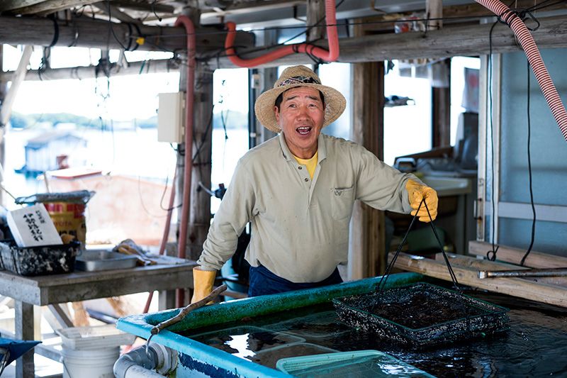 風光明媚(めいび)な英虞湾の入り江で、井上光さんの家族は3代に渡って真珠の養殖業を営んでいる。彼自身この仕事を始めて42年になる。「貝を開いてつややかに輝く真珠を目にしたときのわくわくする気持ちは今も変わりません」と言う。「私が目指しているのは、100人が真珠を見たときに、100人全員が完璧だと思う真珠を作ることです」と付け加えた。