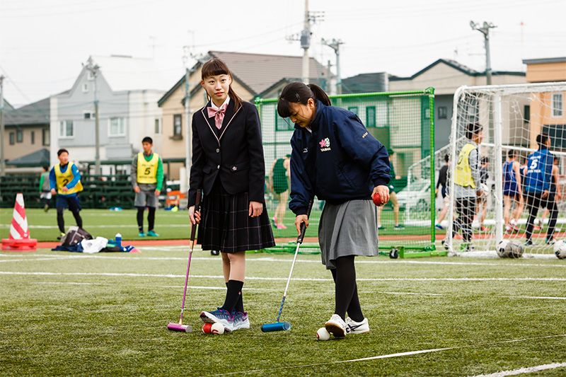 「最初は、ただ単純にボールを打ってゲート通過や他のボールへのタッチ(当てる)に成功することが楽しかったけれど、今はボールをどこに打ったら相手から狙われないかなど作戦を考えるのが面白い。また、1打で逆転できるので、誰でも試合ごとにキープレーヤーになれる点も大きな魅力です」(棟方祐貴さん、3年生)